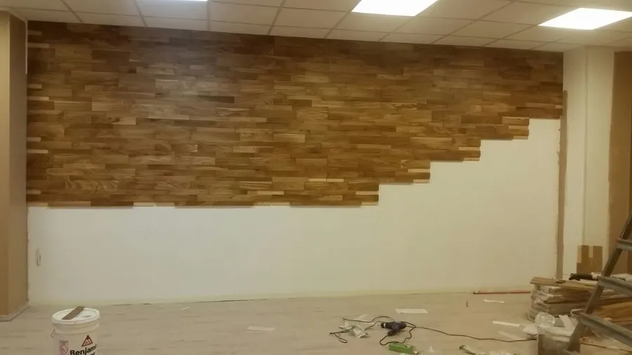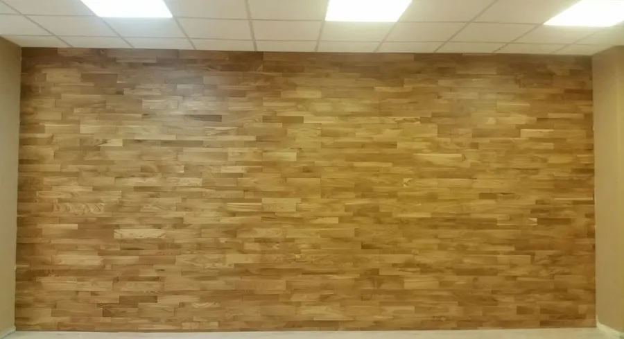 Стеновая панель из массива дуба "Панели разбежка широкие/узкие", переговорная в бизнес центре "Смирновский" , г. Москва