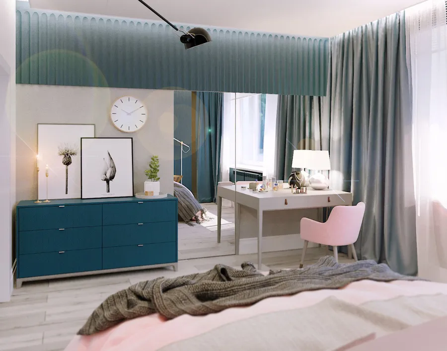 Визуализация проекта спальни, пример использования панели "Каннелюры". Проект дизайнера Натальи Черкашиной (инстаграмм - @hi.nataly). г. Новосибирск