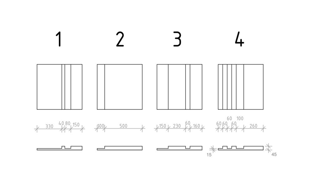 Коллекция состоит из 4х разных панелей, которые можно по разному комбинировать и укладывать в композиции.