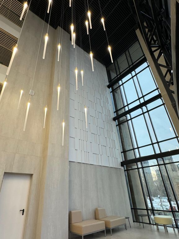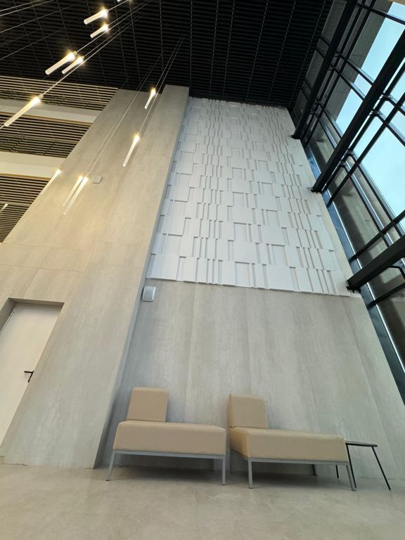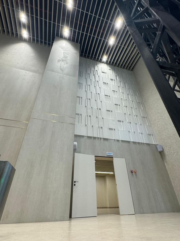 Крупноформатные панели, спроектированные для отделки общественных пространств и больших площадей. Применены при отделке "Центра международной борьбы", г. Уфа.