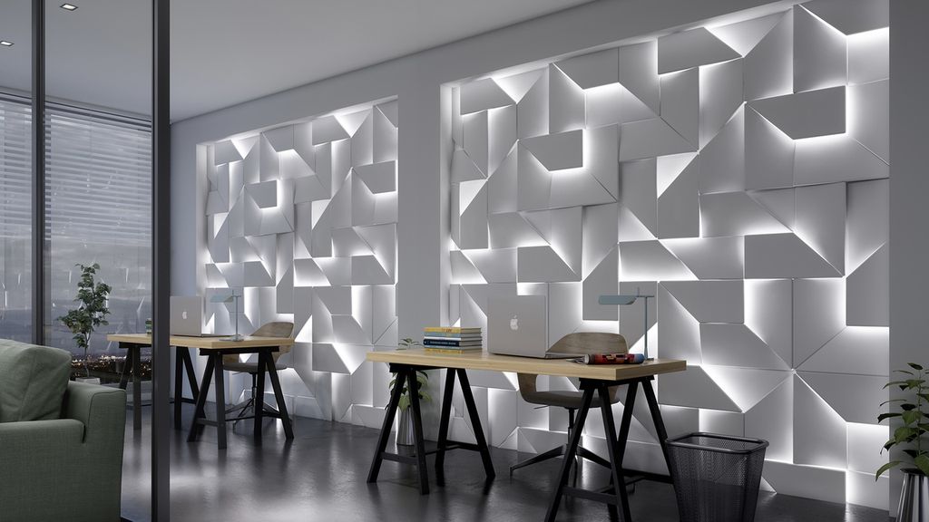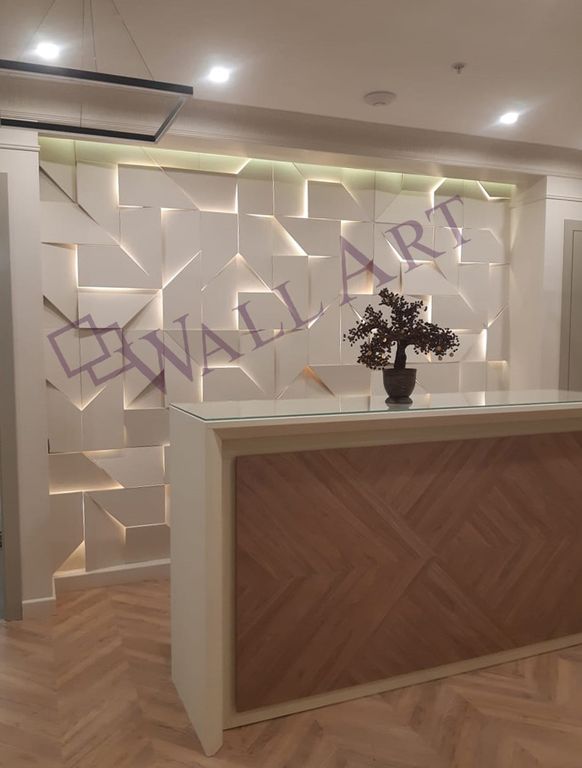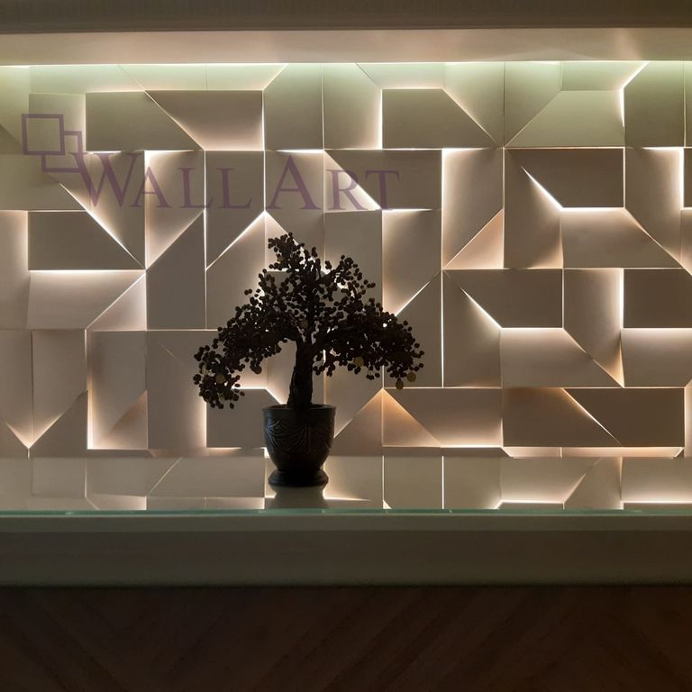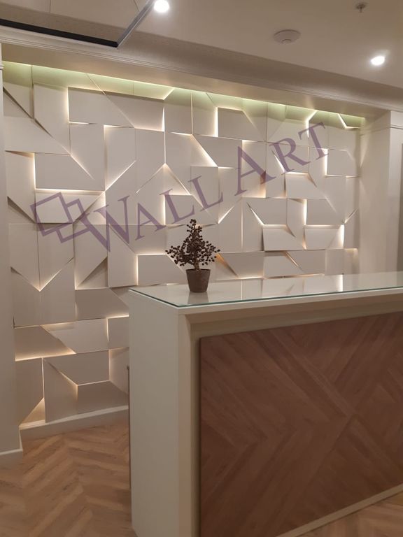 Панели выполнены из МДФ и покрыты эмалью. Полностью готовы к монтажу. Данные панели могут быть выполнены из гипса (Световая 3D панель из гипса "Iq").