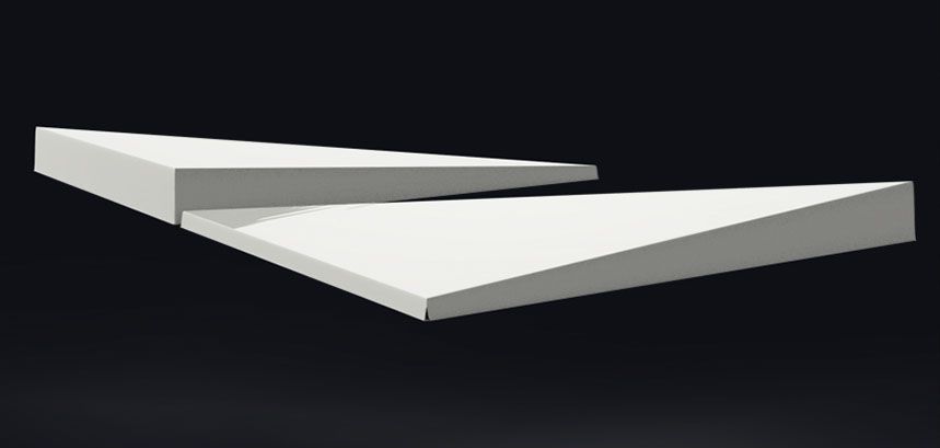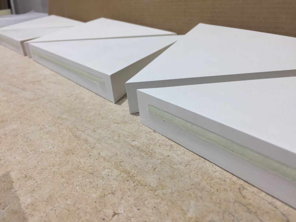 Панели представляют собой равносторонний треугольник со сторонами 270 мм. Тонкая часть составляет 8мм, толстая 28. Панели разнонаклоненные.
